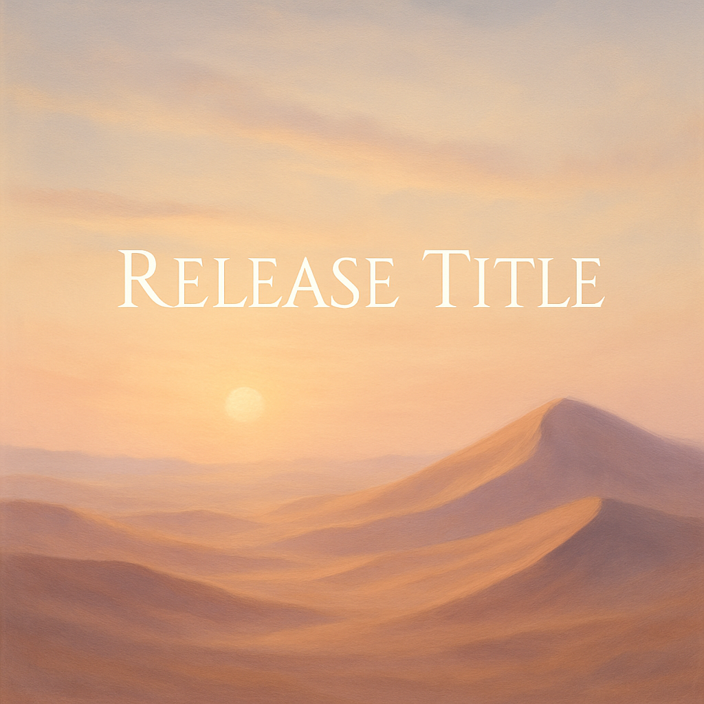 Design 1:1 album cover art with a meditative, spiritual theme. Show a calm, but epic desert scene at sunrise, with a subtle glow. Nothing else in the image. The light is soft, airy, and dreamy. The title "Release Title" uses a font like Cinzel Decorative or Cormorant Upright for a spiritual vibe.