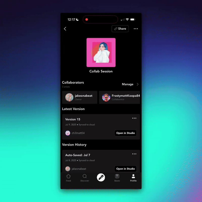 You can now share project invite links to make it even easier to collab with other artists. Just text them the link and they will be able to add vocals or make edits!