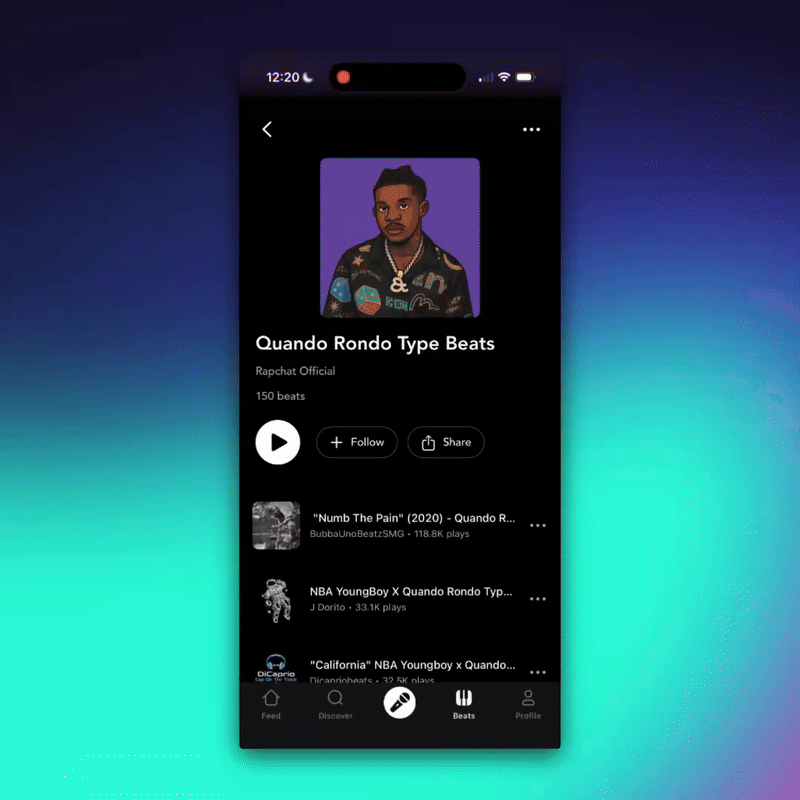 Your Beats Feed now has a Netflix-style horizontal design with sections you can swipe through by vibe, mood, or style. This makes it quicker and easier to spot exactly the type of beats youโre looking for โ trap bangers, soulful R&B, or experimental sounds.