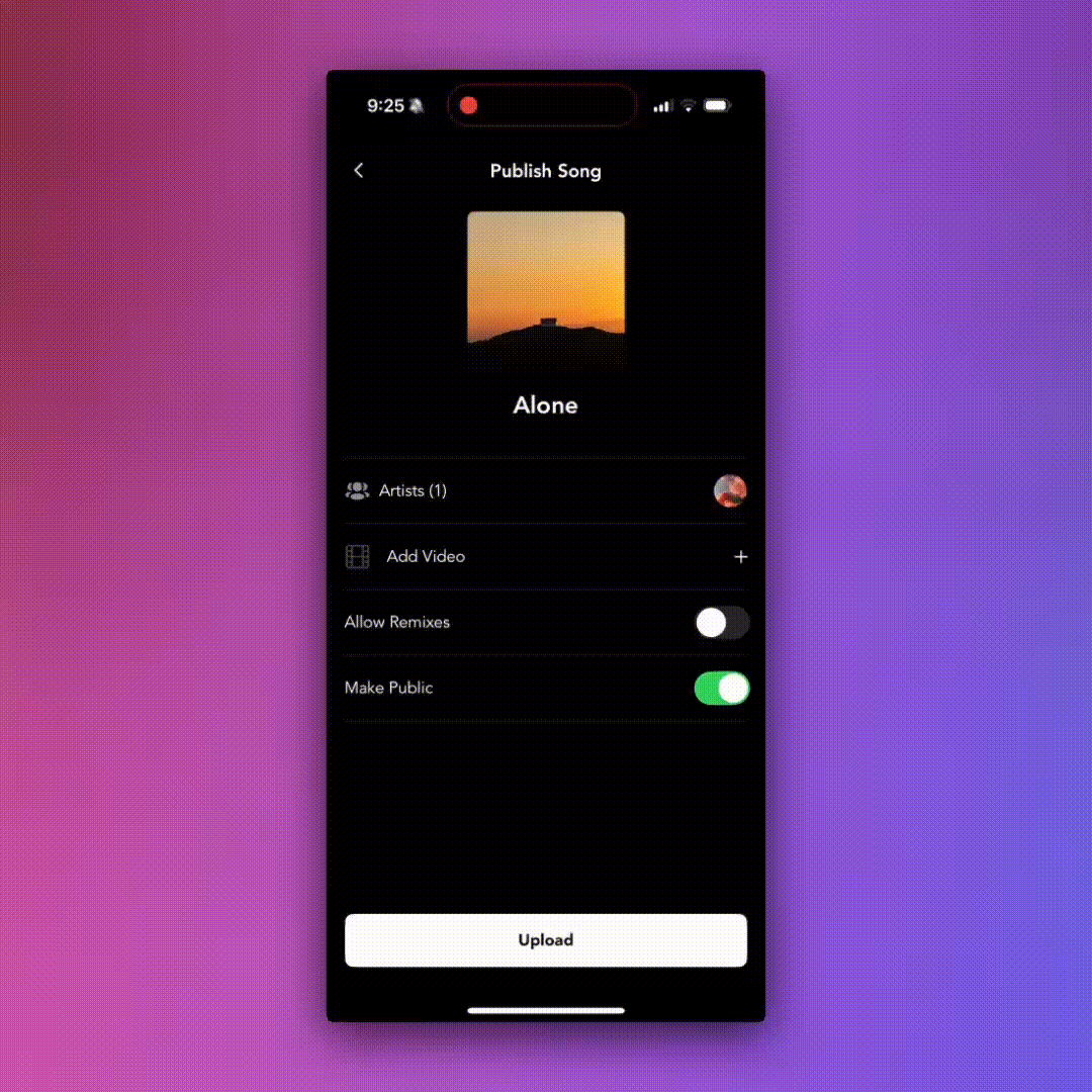 Finished a song and want to give credit where it’s due? You can now add collaborators during the publish flow. No need to start a collab project — just tag your contributors when uploading and they’ll be featured on the track.