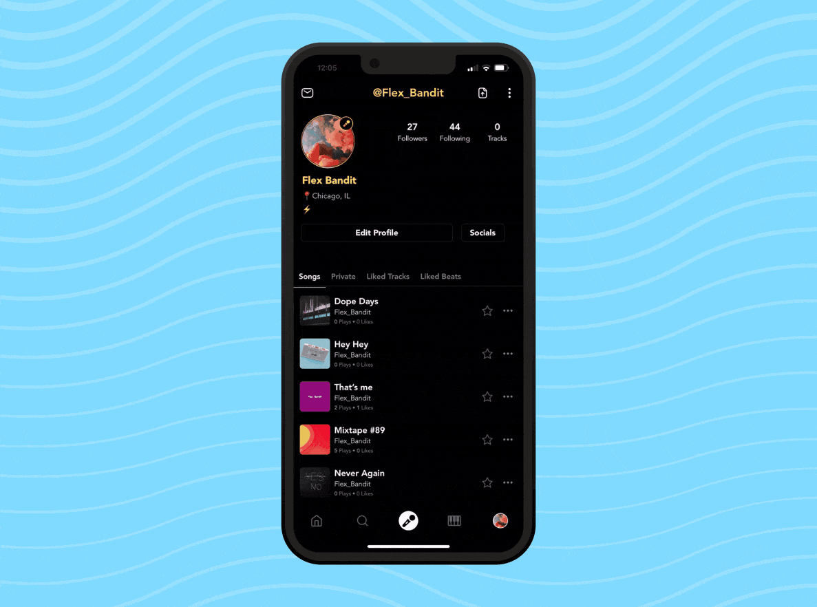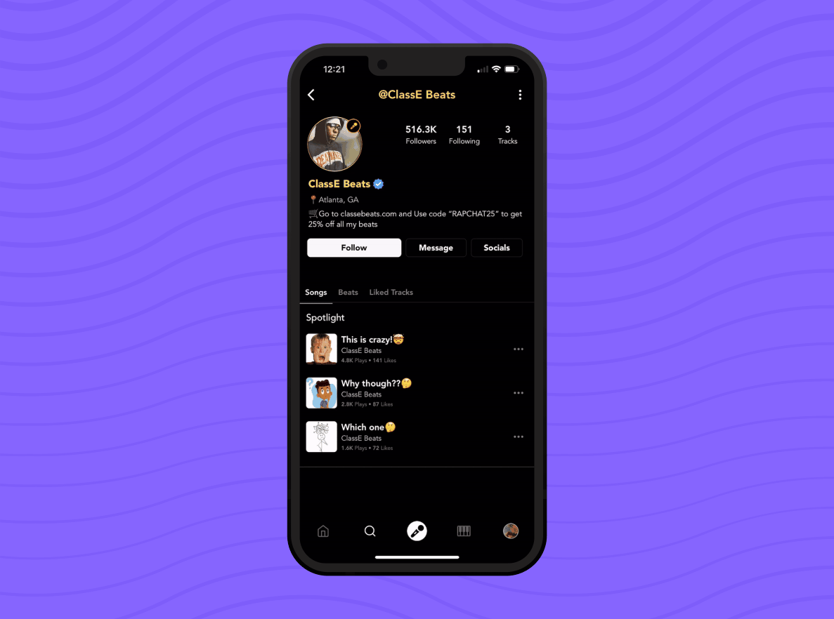 Hit the quick upload icon from your profile to quickly import your existing songs to Rapchat